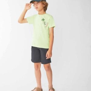 Conjunto de Niño Spagnolo – Polo Verde Caqui y Bermuda Beige Estampada