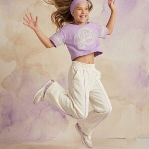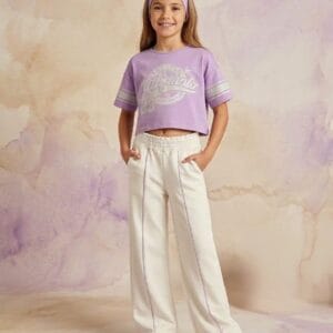 Conjunto niña deportivo lila con pantalón blanco