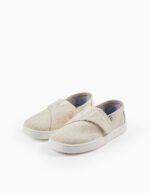 Alpargatas de tela beige para niño, 100% textil. Con tira autoadherente para calzar y ajustar con facilidad. Pequeño detalle de goma en el talón. Plantilla con patrón a rayas. Suela de goma blanca, antideslizante. Big Me: Plantillas con diseño de semicírculos para que su niño pueda identificar fácilmente el pie correspondiente, promoviendo su autonomía.Marca Zippy.