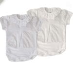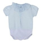 Body de bebé con cuello volante y tejido plumeti, ideal para primavera-verano. Disponible en blanco, beige, rosa y celeste. Desde 1 hasta 36 meses. ¡Solo 13,90€!