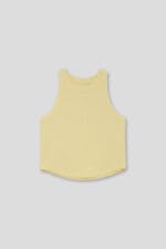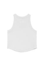 Camiseta básica de tirantes en tejido canalé, disponible en color rosa, vainilla y blanco. Un imprescindible cómodo y versátil para el día a día.