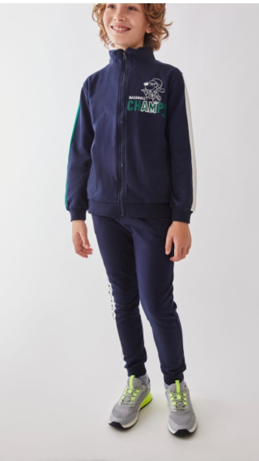 Conjunto de chándal para niño en color marino, perfecto para la temporada y para un uso diario cómodo y práctico.
