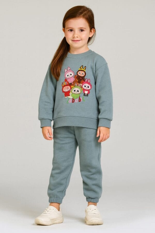 Etiquetas: chándal estampado niña, labubu, ropa cómoda para niña, chándal niña abdb, conjunto infantil verde, ropa niña personajes divertidos, chándal 3 a 10 años