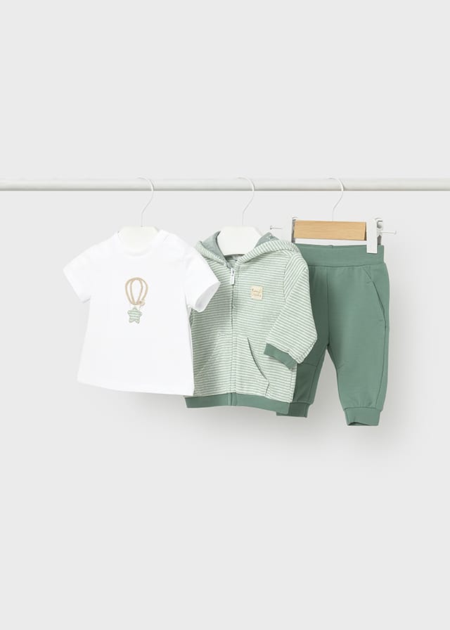 Conjunto bebé 3 piezas verde con sudadera y pantalón Mayoral Ref 1892