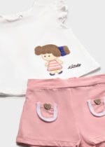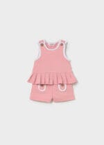 Camiseta en tono rosa con volante y short a juego