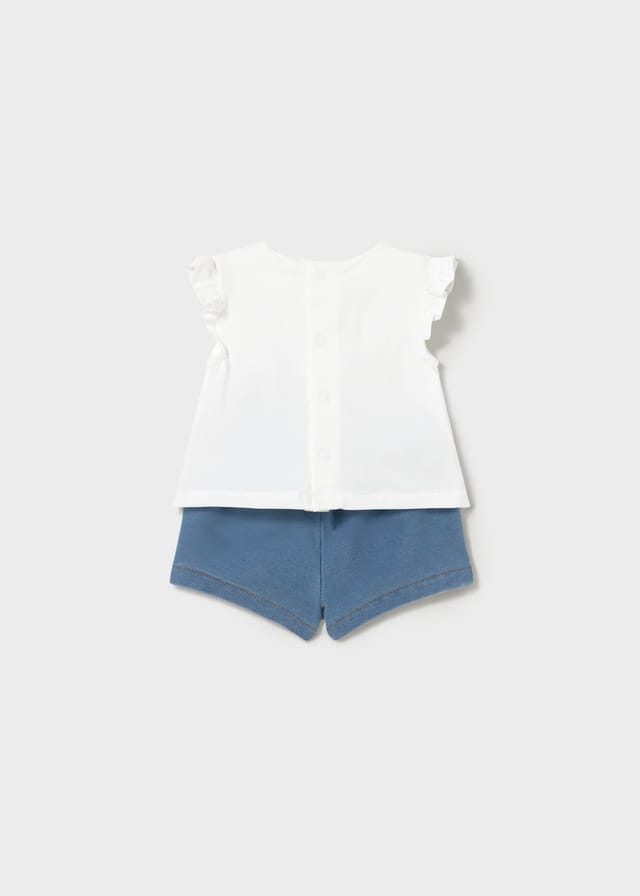 Camiseta blanca con detalle bordado y short estilo denim