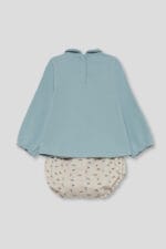 Conjunto de bebé niño en suave algodón, con camiseta verde agua de elefante y bombacho estampado de animalitos. Diseño cómodo y original de la marca Street Monkey.
