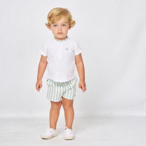 Etiquetas: conjunto bebé Spagnolo, conjunto niño verano, conjunto bebé niño verano, moda infantil spagnolo, polo bebé blanco, short rayas bebé, ropa bebé elegante