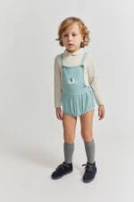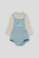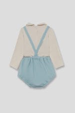 Conjunto para bebé con blusa cruda de cuello redondo y ranita con peto en azul safari de Street Monkey. Ideal para otoño e invierno.