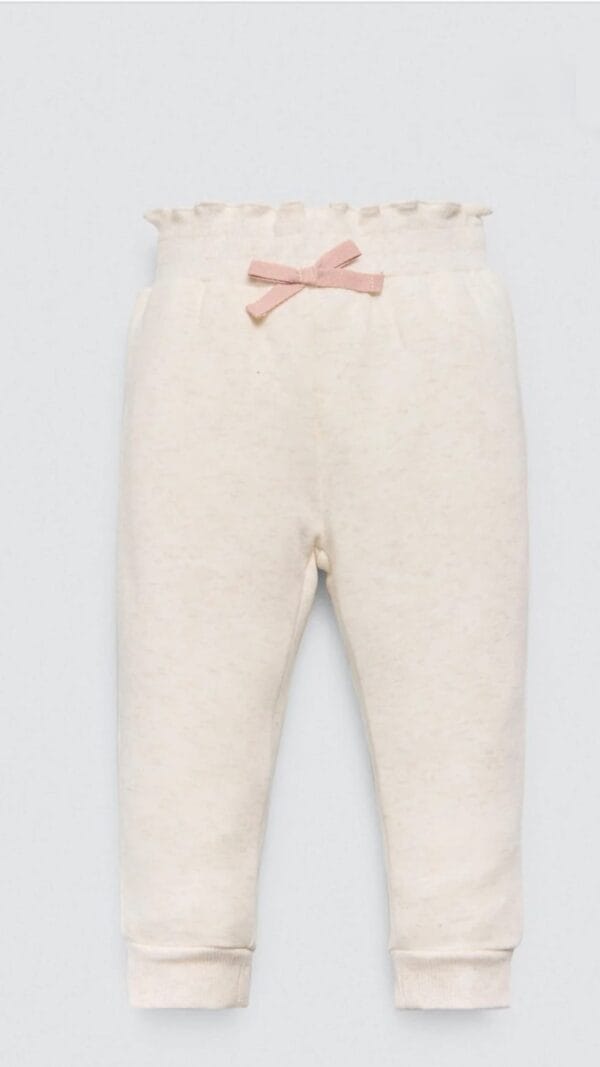 Conjunto beige de niña con estrella glitter y pantalón con lacito, de Isabel Mora.