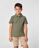 Este conjunto de Spagnolo es la combinación perfecta entre elegancia y comodidad para los más pequeños. Incluye un polo de manga corta en color verde caqui, con cuello clásico y logo bordado en el pecho, ideal para un look sofisticado y versátil.
