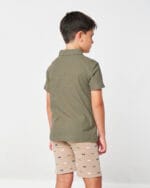 Conjunto de Niño Spagnolo – Polo Verde Caqui y Bermuda Beige Estampada