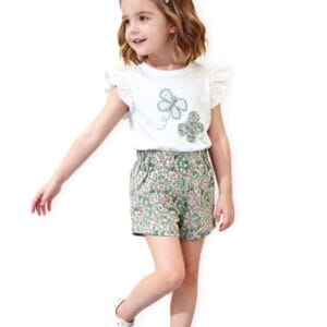 Conjunto de niña blanco con mariposas y short floral verde