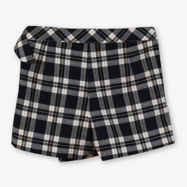 Conjunto niña falda-pantalón cuadros con camiseta beige