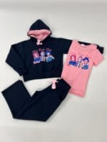 Conjunto de 3 piezas para niña estilo KPOP, con sudadera marino, camiseta rosa y pantalón a juego. Moderno, cómodo y lleno de estilo urbano.