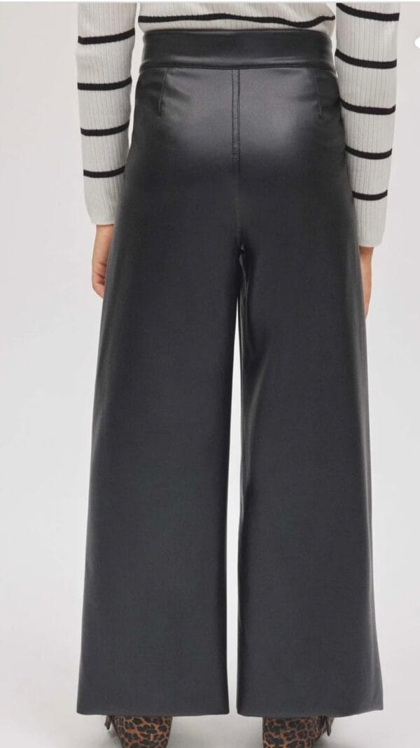Pantalón efecto piel con pierna ancha y bolsillos delanteros. Ideal para un look moderno y diferente. Isabel Mora.
