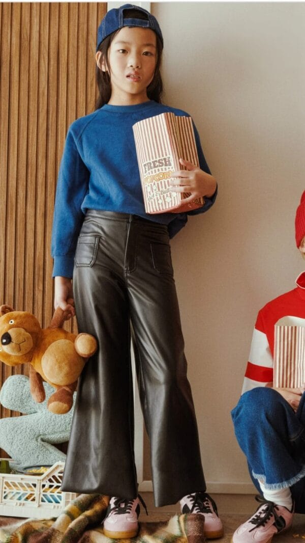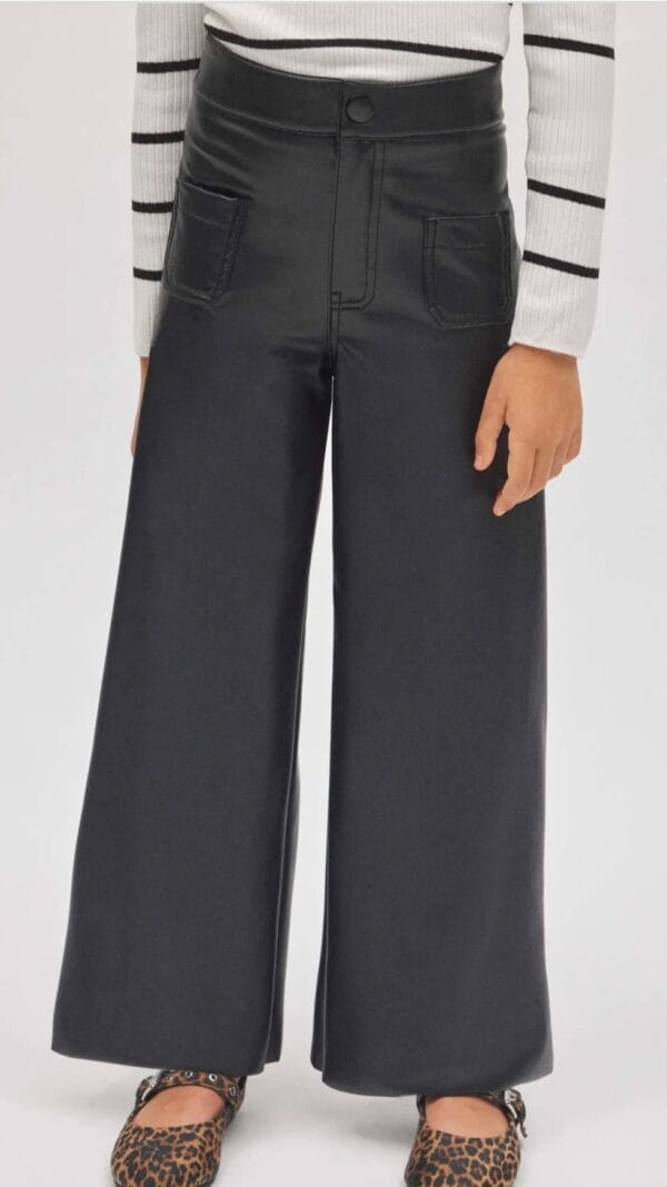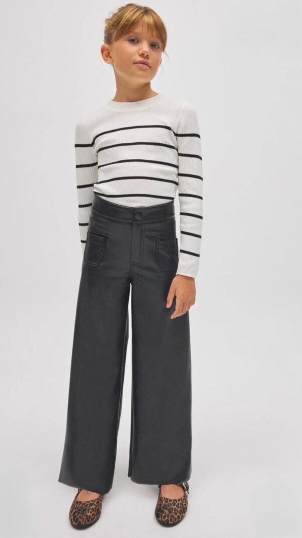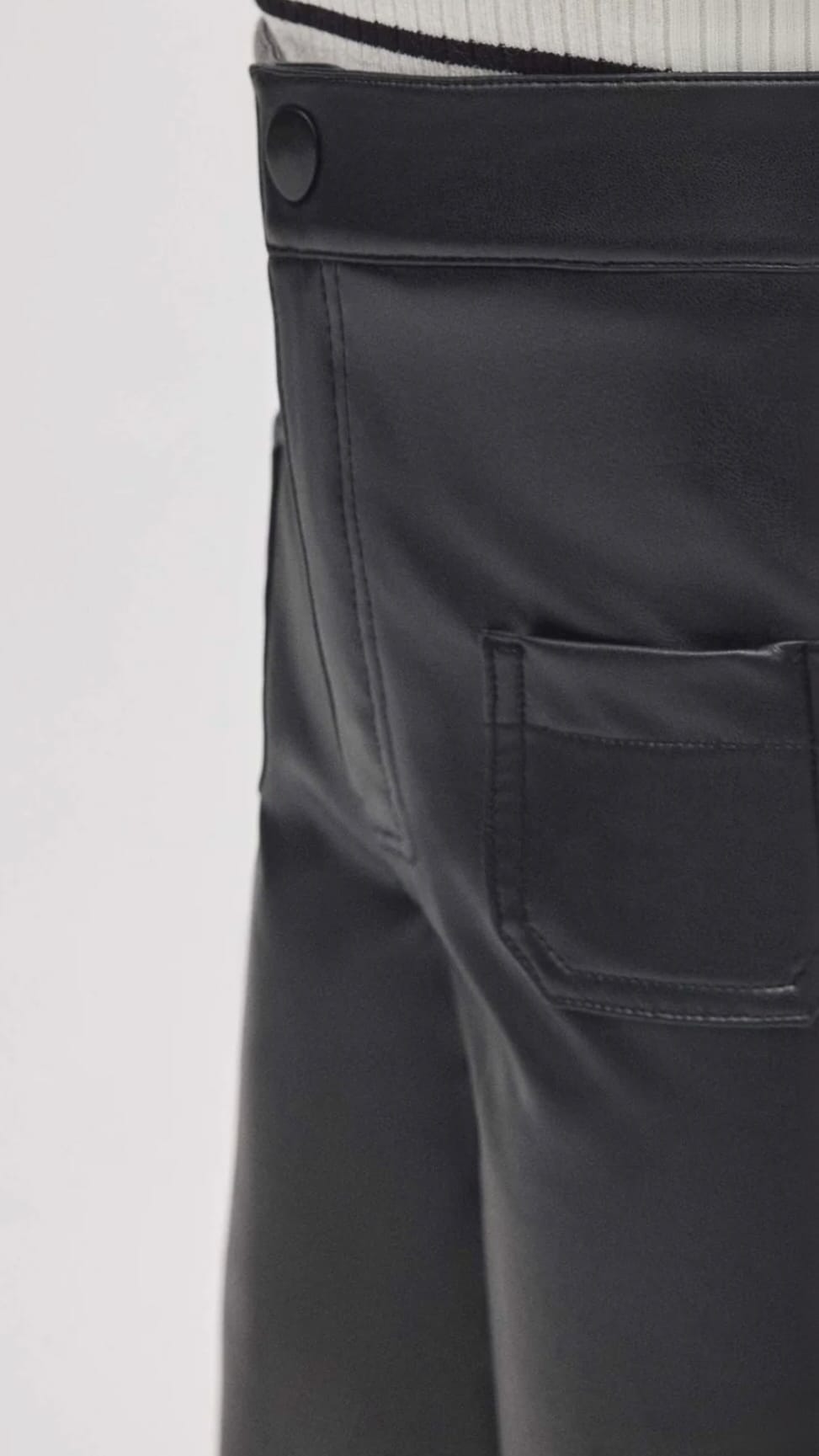 Etiquetas: pantalón niña efecto piel, pantalón ancho negro niña, pantalón palazzo infantil, pantalón moderno niña, Isabel Mora niña