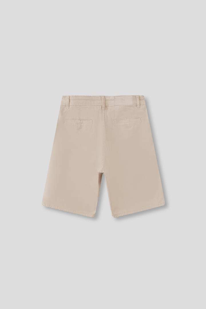 Bermuda chino infantil en color beige, con cierre de botón y bolsillos laterales. Un básico versátil y cómodo para niños de 2 a 16 años.