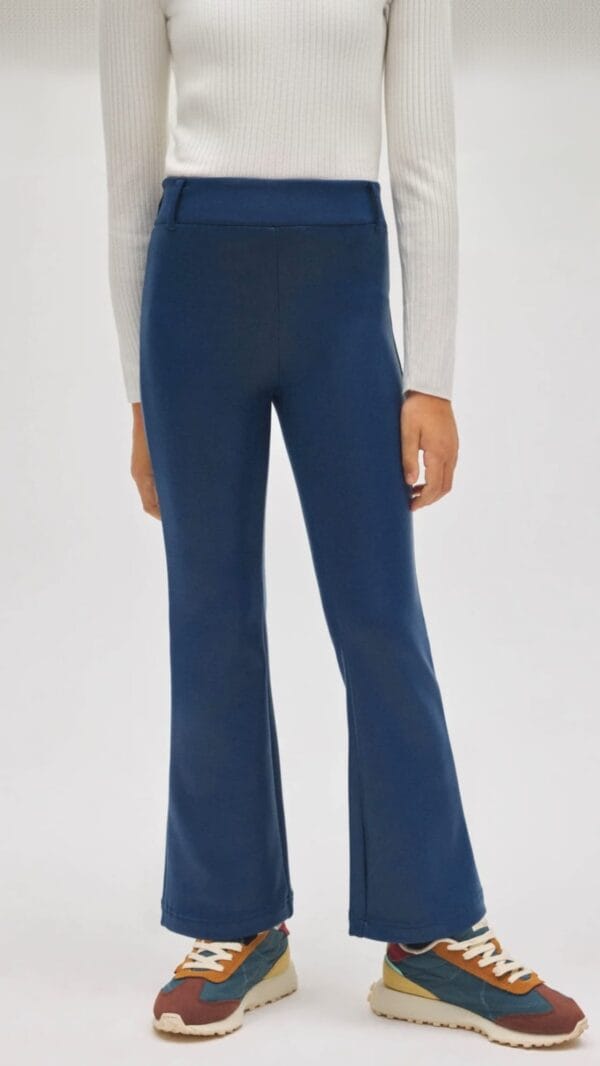 Pantalón termal para niña de la marca Isabel Mora, en color azul con corte acampanado. Suave, cálido y con un diseño moderno.
