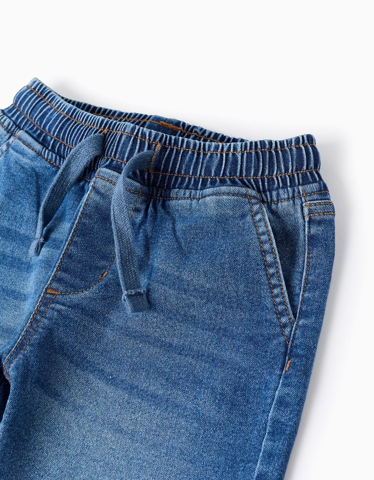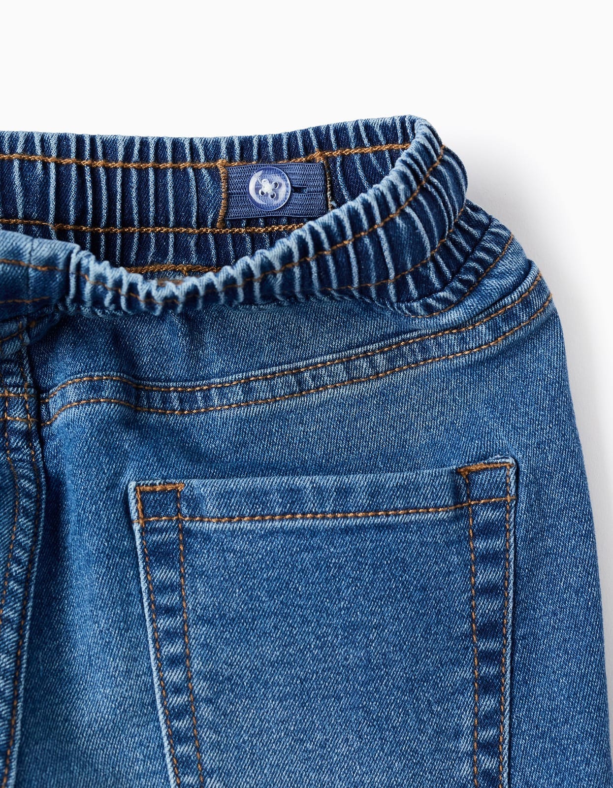 Cuenta con cintura elástica que facilita el ajuste y aporta mayor comodidad, además de cordón decorativo y bolsillos delanteros y traseros que le dan un estilo casual y práctico. Su acabado lavado en tono denim azul la convierte en una prenda fácil de combinar con camisetas, polos o sudaderas ligeras.