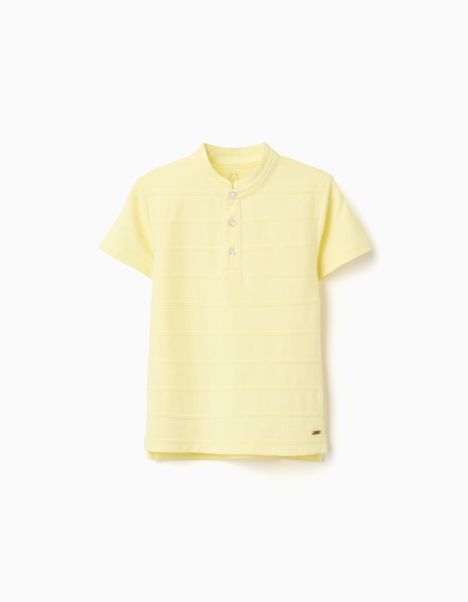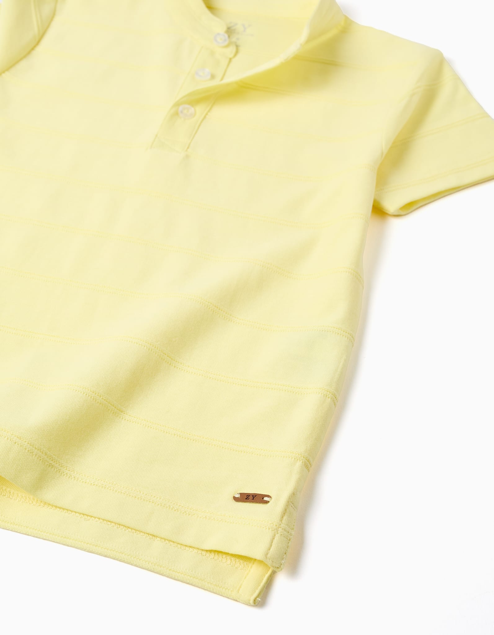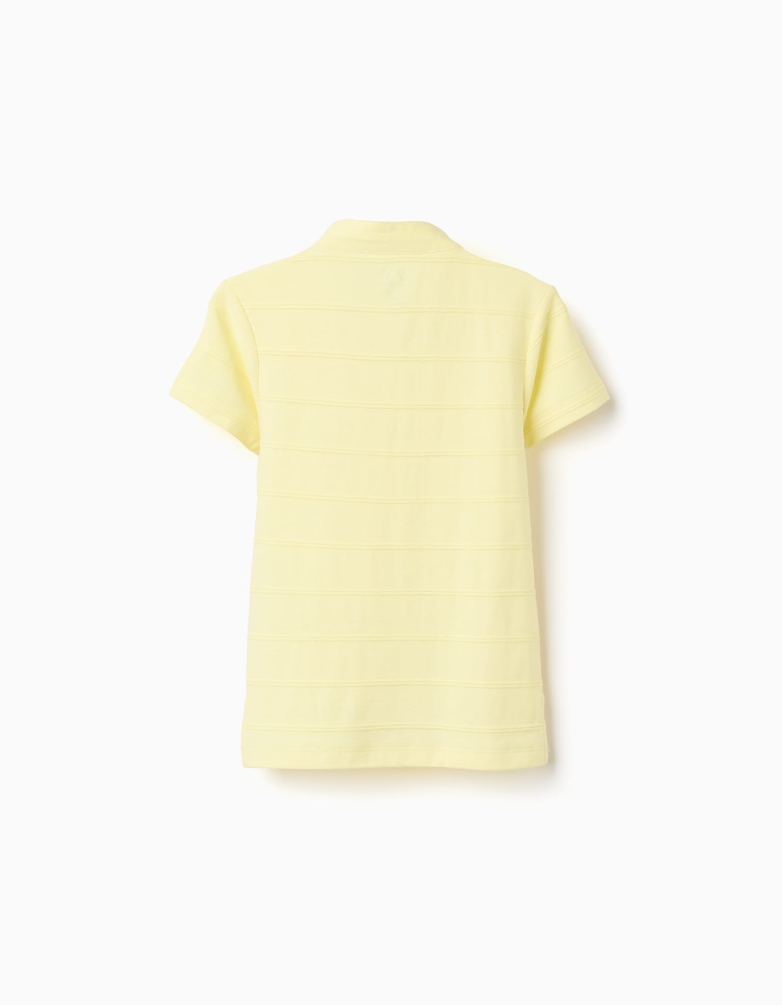 Polo de niño en color amarillo suave, de manga corta y tejido cómodo. Un básico versátil y fresco para el día a día en primavera y verano.