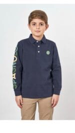 Polo Spagnolo para niño en color azul marino, con detalle bordado en el pecho y texto en relieve “SPAGNOLO” en la manga.