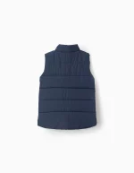 Chaleco infantil acolchado en color azul marino con cierre de cremallera. Ligero, cómodo y perfecto para entretiempo. Ideal para combinar con sudaderas o camisetas.