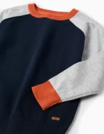 Jersey infantil de la marca Zippy, confeccionado en punto suave y cómodo. Presenta un diseño moderno de mangas raglán en tres colores: cuerpo azul marino, mangas grises y detalles en teja en el cuello y puños. Cuello redondo, bajo y puños elásticos en canalé para un ajuste perfecto. Versátil y fácil de combinar, es ideal tanto para el día a día como para ocasiones especiales. Disponible desde la talla 3/4 hasta la 13/14 años.