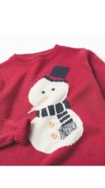 Con diseño frontal de muñeco de nieve tejido, detalles en relieve como botones y bufanda, y cuello redondo de canalé.