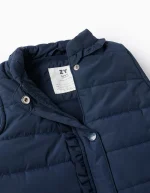 Chaleco acolchado para niña con volante decorativo en el frontal. Cierre con botones automáticos. Disponible en rosa y azul marino.