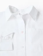 Camisa blanca básica de niña con cuello camisero, bolsillo frontal y botones. Un fondo de armario ideal para cualquier ocasión.