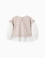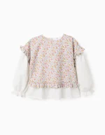 Blusa de niña con estampado floral, volantes y mangas blancas. Una prenda versátil y elegante para cualquier ocasión.