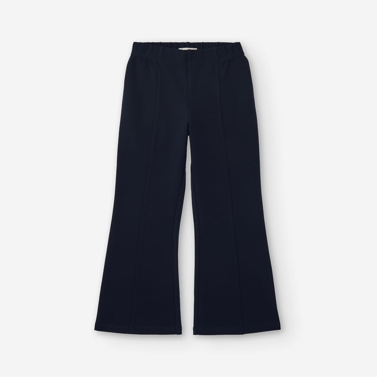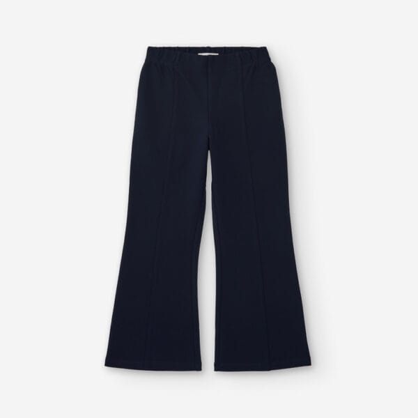 Pantalón de niña en color marino, con corte acampanado y cinturilla elástica. Cómodo, básico y muy versátil para combinar a diario.