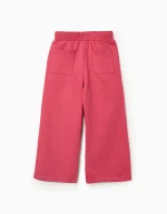 Pantalón largo ancho para niña confeccionado en suave algodón, ideal para ofrecer comodidad y libertad de movimiento. De color frambuesa, cuenta con cintura elástica con cordón ajustable para un ajuste perfecto. Incluye bolsillos laterales funcionales y bolsillos traseros decorativos. Un básico versátil para combinar con sudaderas o camisetas de la nueva colección.