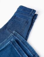 Pantalón vaquero para niña con corte acampanado, muy cómodo y fácil de combinar. Incluye cintura ajustable con botón interior. Ideal para el día a día.