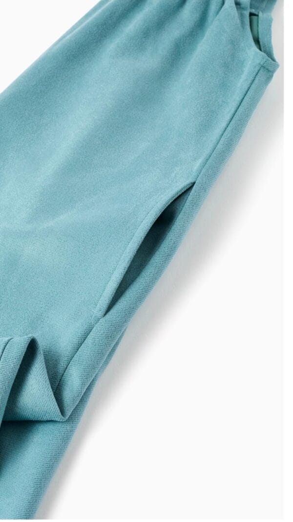 Peto azul para niña, confeccionado en ante suave, con tirantes ajustables y botones decorativos. Una prenda cómoda, versátil y perfecta para combinar en otoño-invierno.