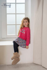 Vestido sudadera de niña en color fucsia con falda de flores. Un diseño alegre y cómodo de Nelblu, ideal para el día a día con un toque moderno y femenino.