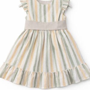 Vestido de niña de la marca Babyfer en combinación de tonos beige y blanco, con un diseño delicado y muy elegante.