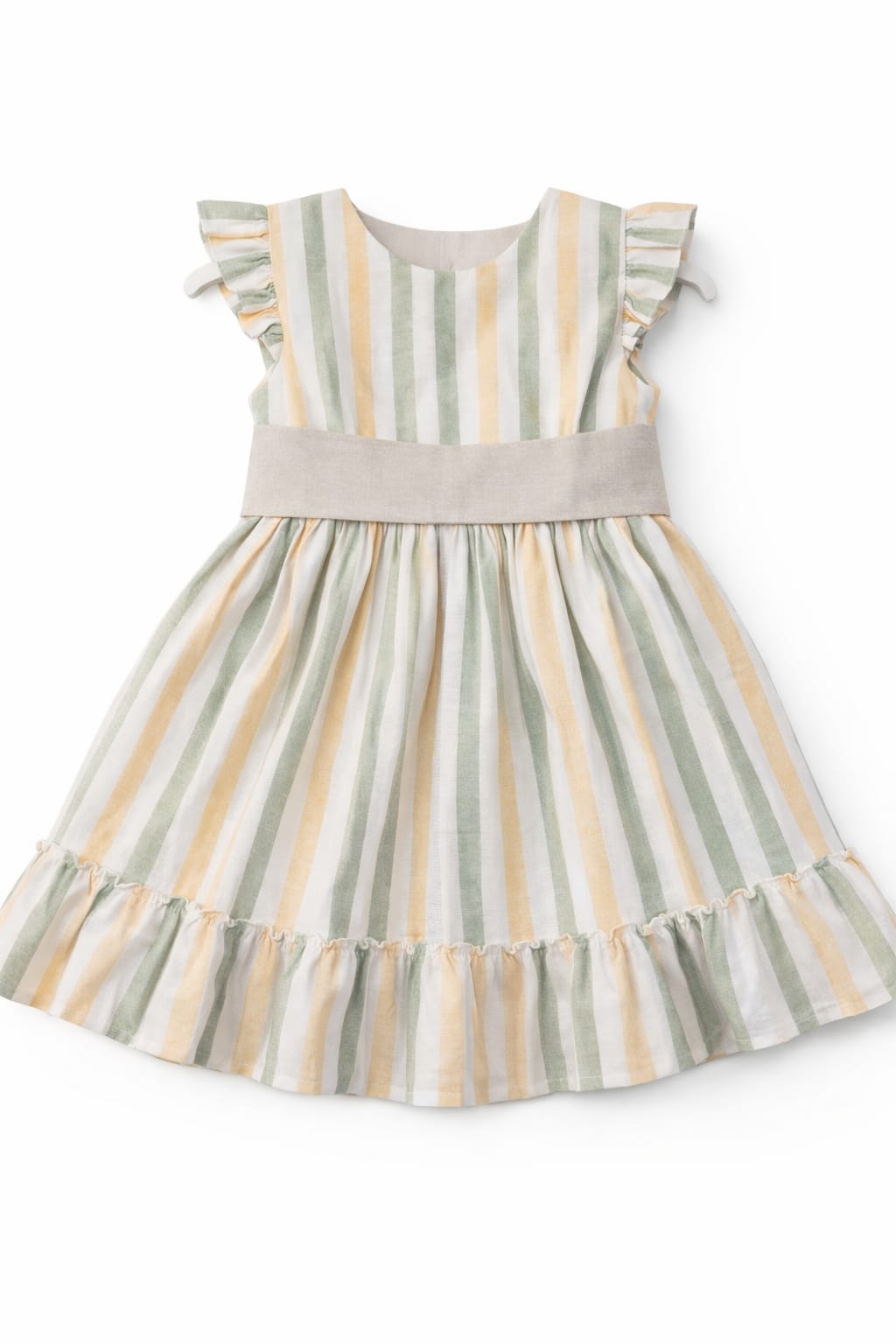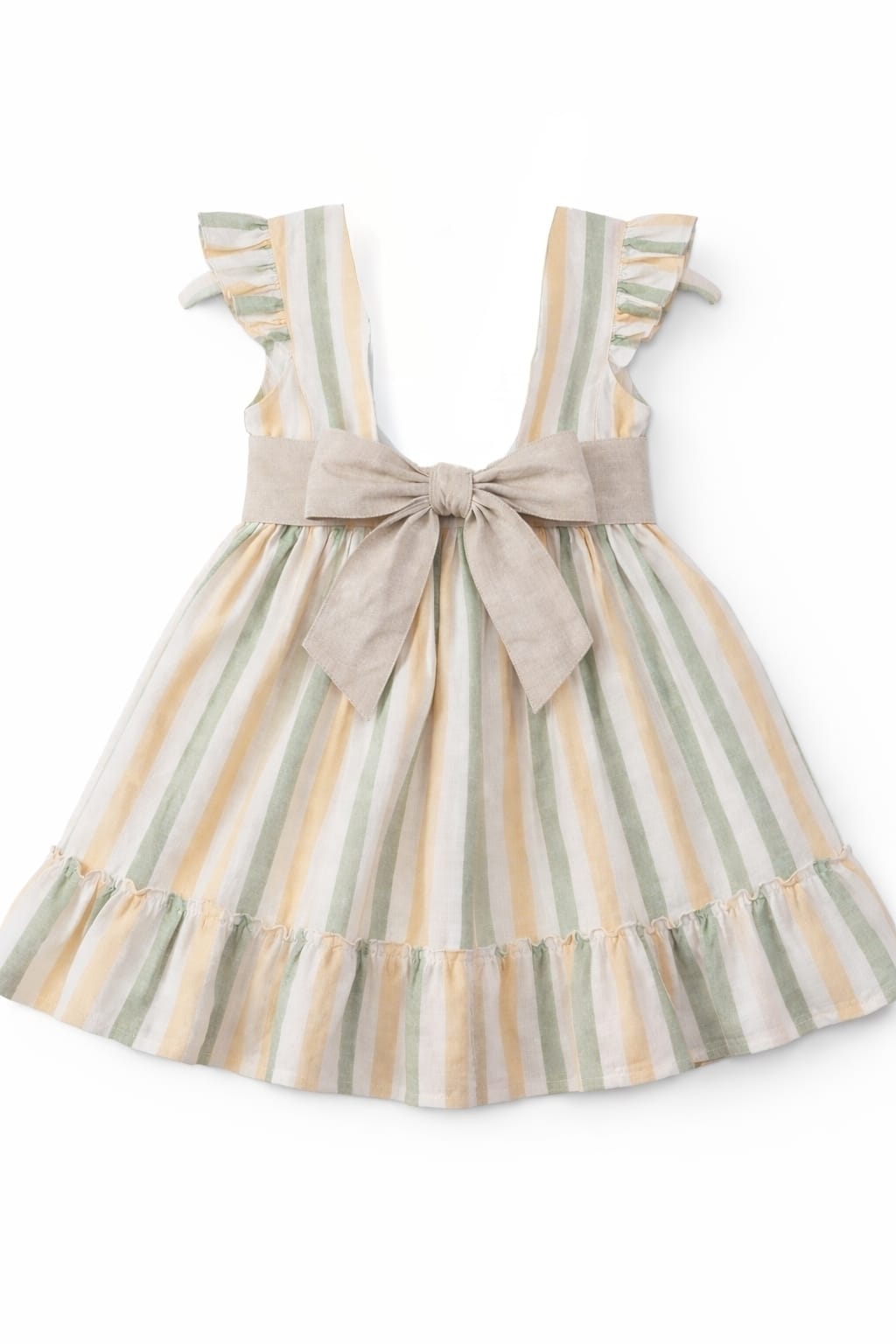 Etiquetas: vestido fresco niña, vestido verde niña, vestido beige niña, vestido Babyfer, ropa infantil niña, vestido niña, vestido rayas niña, moda infantil verano, vestido con lazo niña, vestido verano niña
