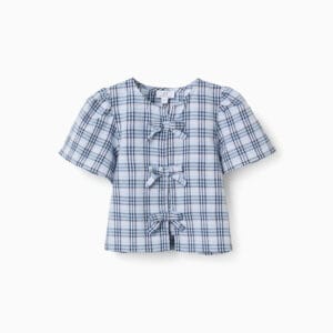 Blusa niña cuadros azul con lazos decorativos ZKGAP0302_26010