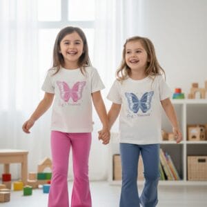 Conjunto niña camiseta mariposa y leggings acampanados