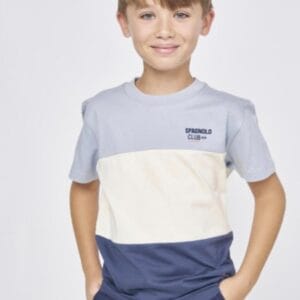 Camiseta niño Spagnolo bicolor beige con mangas en contraste