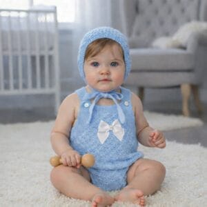Pelele bebé de punto celeste con capota y lazo