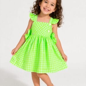 Vestido niña cuadros verde flúor Miranda Ref 614/V