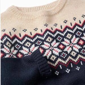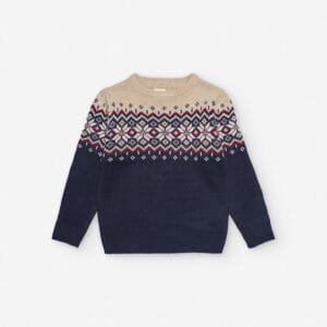 Jersey navideño niño Zippy azul marino con estampado nórdico
